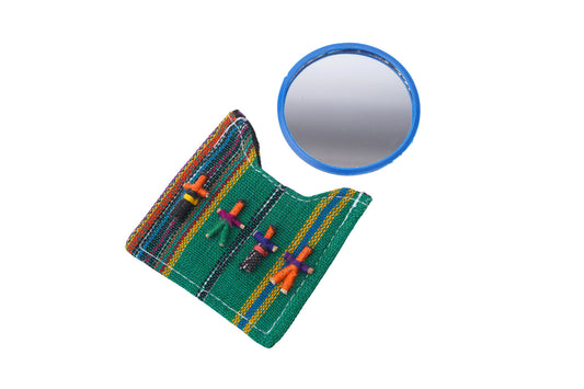Worry Doll Slogan Compact Mirror with Pouch and Motivational Slogan | 4 Colours - 1 Picked Up Random | Gift For Her