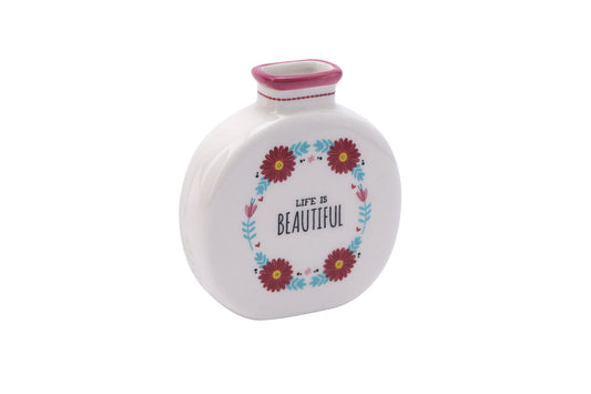 Ceramic Floral Bud Vase | Life Is Beautiful | White Pink Blue | Flowers | Gift Box | Gift For Home