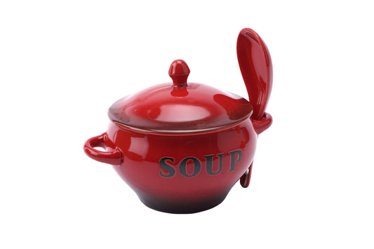 Red Ceramic Soup Bowl with Ceramic Spoon and Gift Box 400 ml | Country Kitchen Chic | Rustic | Breakfast Lunch Dinner