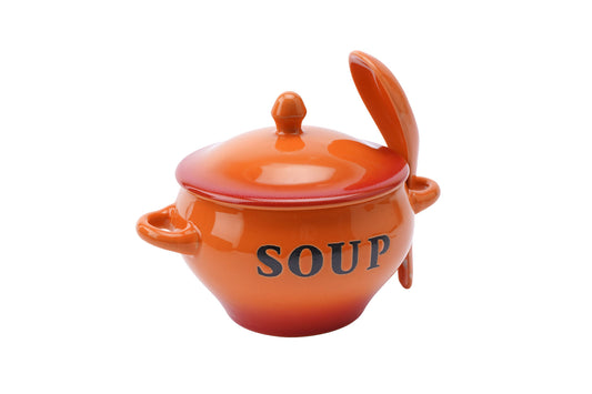 Orange Ceramic Soup Bowl with Ceramic Spoon and Gift Box 400ml | Winter Kitchen Decor | Cosy Home Dining