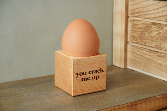 Loft 'You Crack Me Up' Oak Egg Cup In Gift Box | Breakfast | Homeware | Kitchenware