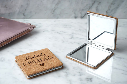 Cork Compact Mirror 'Absolutely Fabulous' • Perfect Gift • Gift Boxed • Travel Friendly • Handbag Accessory • Ladies Gift • Vacation