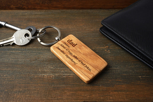 Loft 'Dad' Oak Rectangular Keyring | Perfect Gift | House Keys | Novelty