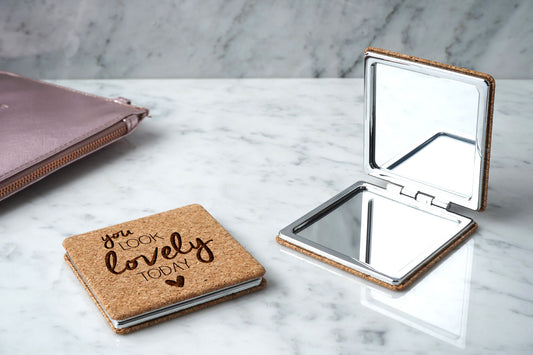 Cork Compact Mirror 'You Look Lovely' • Perfect Gift • Gift Boxed • Travel Friendly • Handbag Accessory • Ladies Gift • Vacation