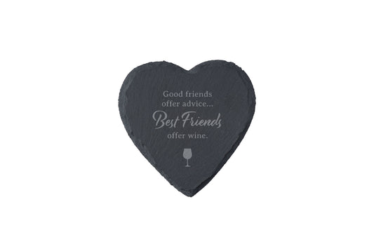 Heart Slate Coaster - 'Best Friends Offer Wine'