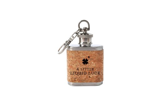 Four Leaf Clover Mini Cork Hipflask 'A Little Liquid Luck' | Keyring | Irish Gift | Souvenir Gift