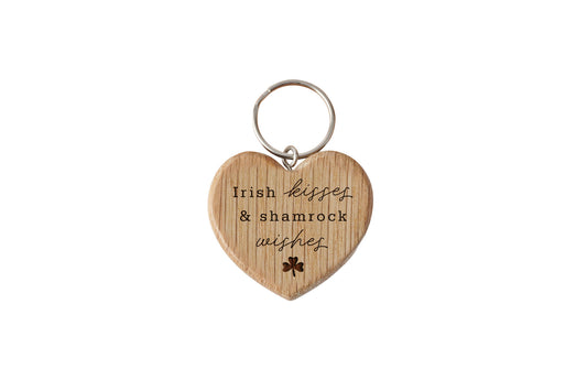 Oak Heart Keyring 'Irish Kisses & Shamrock Wishes' | Perfect Gift | House Keys | Novelty | Luck Of The Irish | Irish Gift