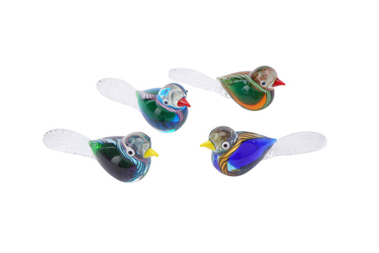 Set of 4 Glass Sitting Birds In Gift Box • Decoration • Ornament • Collectable • Gift For Home • Home Decor