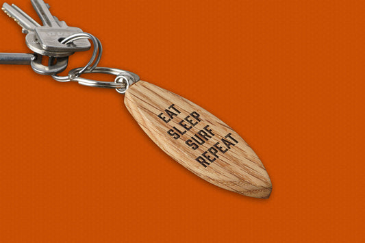 Dapper Chap 'Eat Sleep Surf Repeat' Oak Surfboard Keyring | Birthday | Keepsake | Novelty Keyring