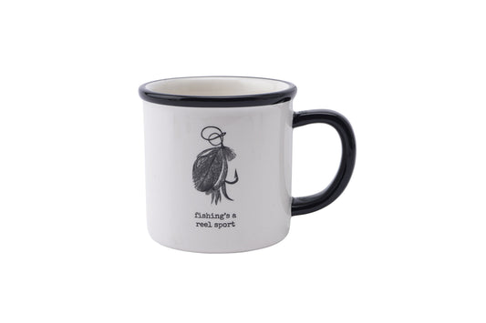 Fish Hook and Feather Ceramic Mug • ‘Fishing’s A Reel Sport’ • Men's • Gift Box • Mug Tea Coffee • Kitchen Home Accessory • Gift For Him