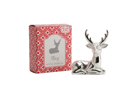 Stag Metal Silver Finish Ring and Jewellery Holder and Organiser Stand in Gift Box | Engagememnt Gifts | Anniversary Gifts | Wedding Gifts
