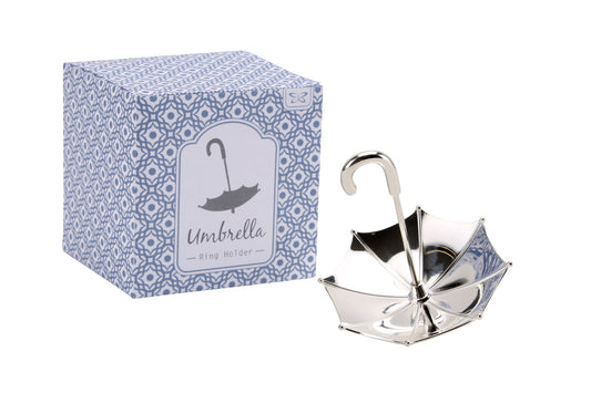 Umbrella Metal Silver Finish Ring and Jewellery Holder and Organiser Stand in Gift Box | Bedside and Bathroom or Kitchen Sink Storage