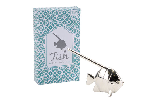 Fish Metal Silver Finish Ring and Jewellery Holder and Organiser Stand in Gift Box | Bedside and Bathroom or Kitchen Sink Storage