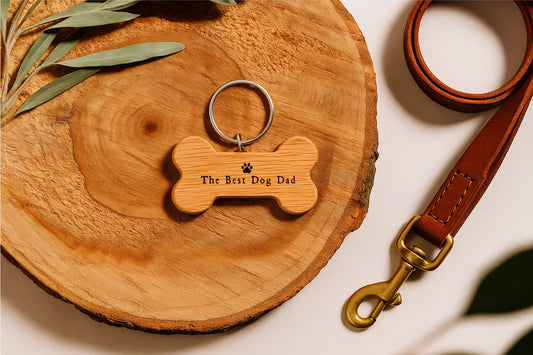 Oak Dog Bone Keyring - 'The Best Dog Dad' | Keys | Key Accessory | Dog Keyring | Pet Accessory