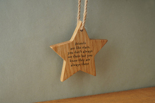 Oak Hanging Star 'Friends Are Like Stars' | Home Decor | Hanging Decoration | Sentiment