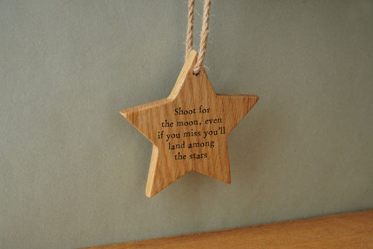 Oak Hanging Star 'Shoot For The Moon' | Home Decor | Hanging Decoration | Sentiment