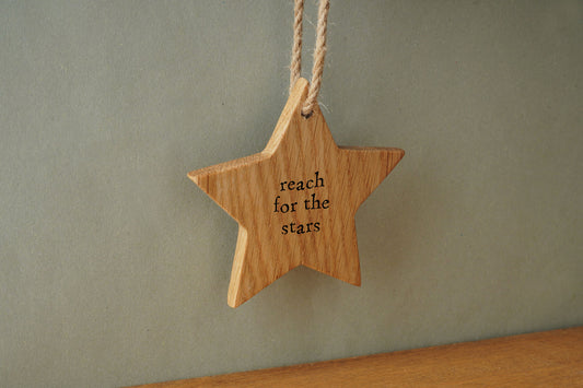 Oak Hanging Star 'Reach For The Stars' | Home Decor | Hanging Decoration | Sentiment