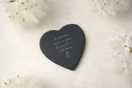 Heart Slate Coaster - 'A Balanced Diet Is A Glass Of Prosecco In Both Hands'