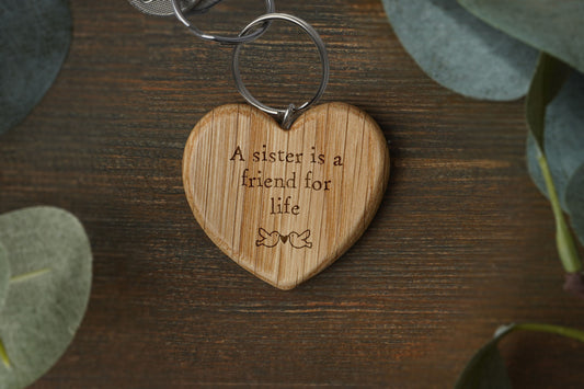 Send With Love 'A Sister Is A Friend For Life' Oak Heart Keyring