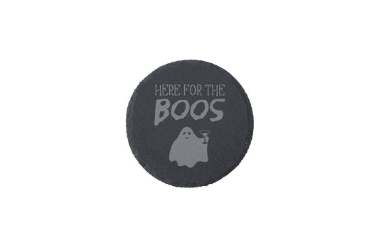 Set of 4 | Round Slate Halloween Coaster 'Here For The Boos'