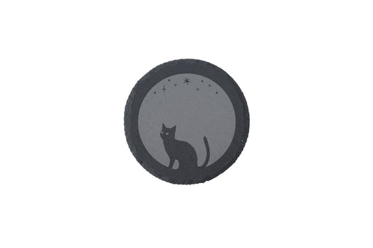 Set of 4 | Halloween Cat Round Slate Coaster in Gift Box