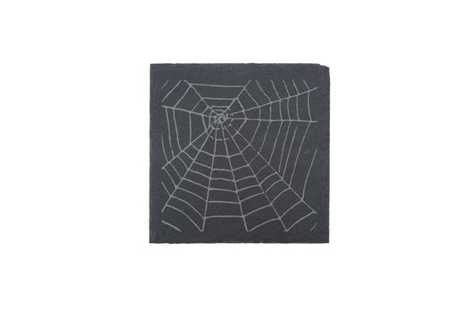Set of 4 | Halloween Cobweb Square Slate Coaster in Gift Box
