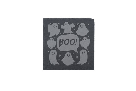 Set of 4 | Halloween Square Slate Coaster 'Boo' in Gift Box