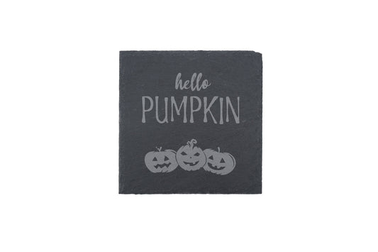 Set of 4 | Halloween Square Slate Coaster - 'Hello Pumpkin' in Gift Box