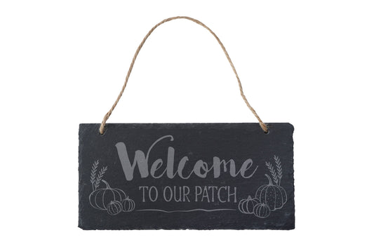 Hanging Illustrated Slate Sign - 'Welcome To Our Patch'