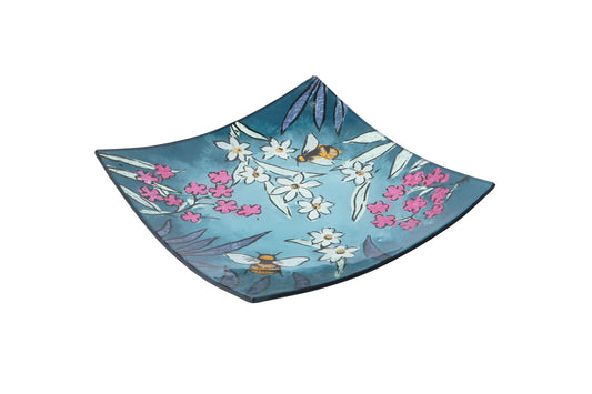 The Beekeeper Glass Twin Tea Light Holder Plate in Gift Box