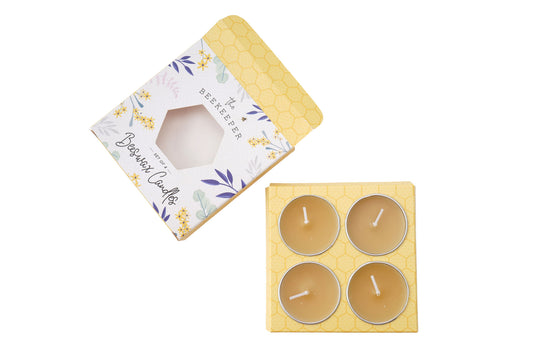 The Beekeeper Set Of 4 Beeswax Tealight Candles In Gift Box