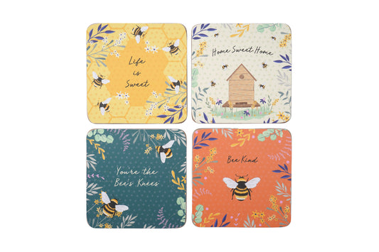 Set of 4 Bee Cork Coasters | Multi-coloured | Gift Boxed | Table Top | Tea Coffee Wine | Gift For Home