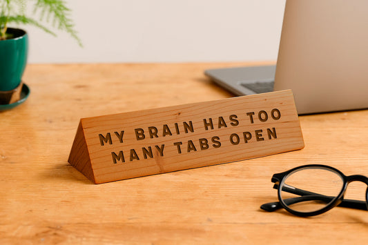 Wooden Desk Sign 'My Brain Has Too Many Tabs Open' | Gift For Her | Gift For Him | Office Sign | Engraved Gift