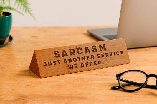 Wooden Desk Sign 'Sarcasm Just Another Service We Offer' | Gift For Her | Gift For Him | Office Sign | Engraved Gift