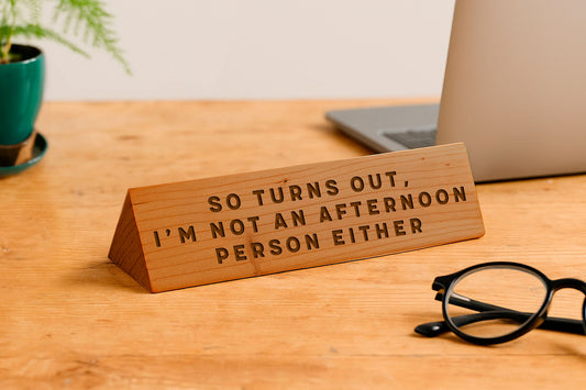 Wooden Desk Sign 'So Turns Out I'm Not An Afternoon Person Either' | Gift For Her | Gift For Him | Office Sign | Engraved Gift