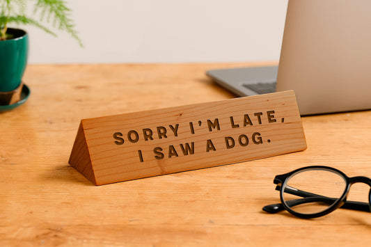 Wooden Desk Sign 'Sorry I'm Late I Saw A Dog' | Gift For Her | Gift For Him | Office Sign | Engraved Gift