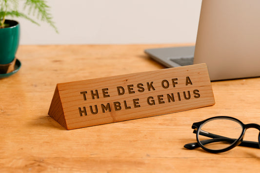 Wooden Desk Sign 'The Desk Of A Humble Genius' | Gift For Her | Gift For Him | Office Sign | Engraved Gift