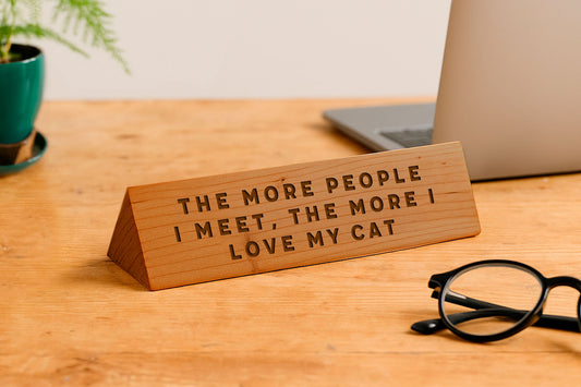 Wooden Desk Sign 'The More People I Meet, The More I Love My Cat' | Gift For Her | Gift For Him | Office Sign | Engraved Gift