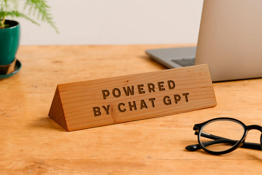 Wooden Desk Sign 'Powered By Chat GPT' | Gift For Her | Gift For Him | Office Sign | Engraved Gift