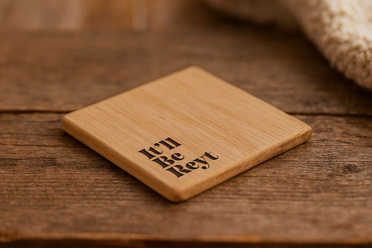 Square Oak Coaster - 'It'll Be Reyt' | Homeware | Humour Gift | Novelty Gift
