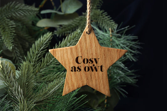 Oak Hanging Star - 'Cosy As Owt' | Home Decor | Hanging Decoration | Sentiment