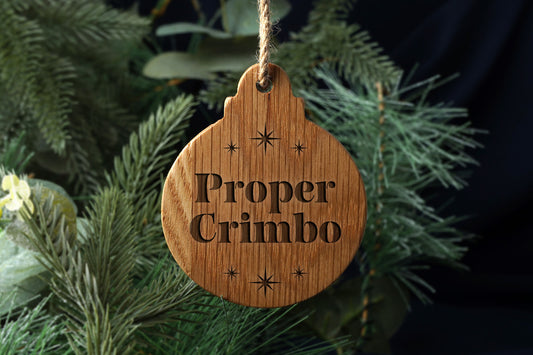 Oak Hanging Bauble - 'Proper Crimbo' | Festive Decoration | Tree Hanger | Wall Hanger | Hanging Sign
