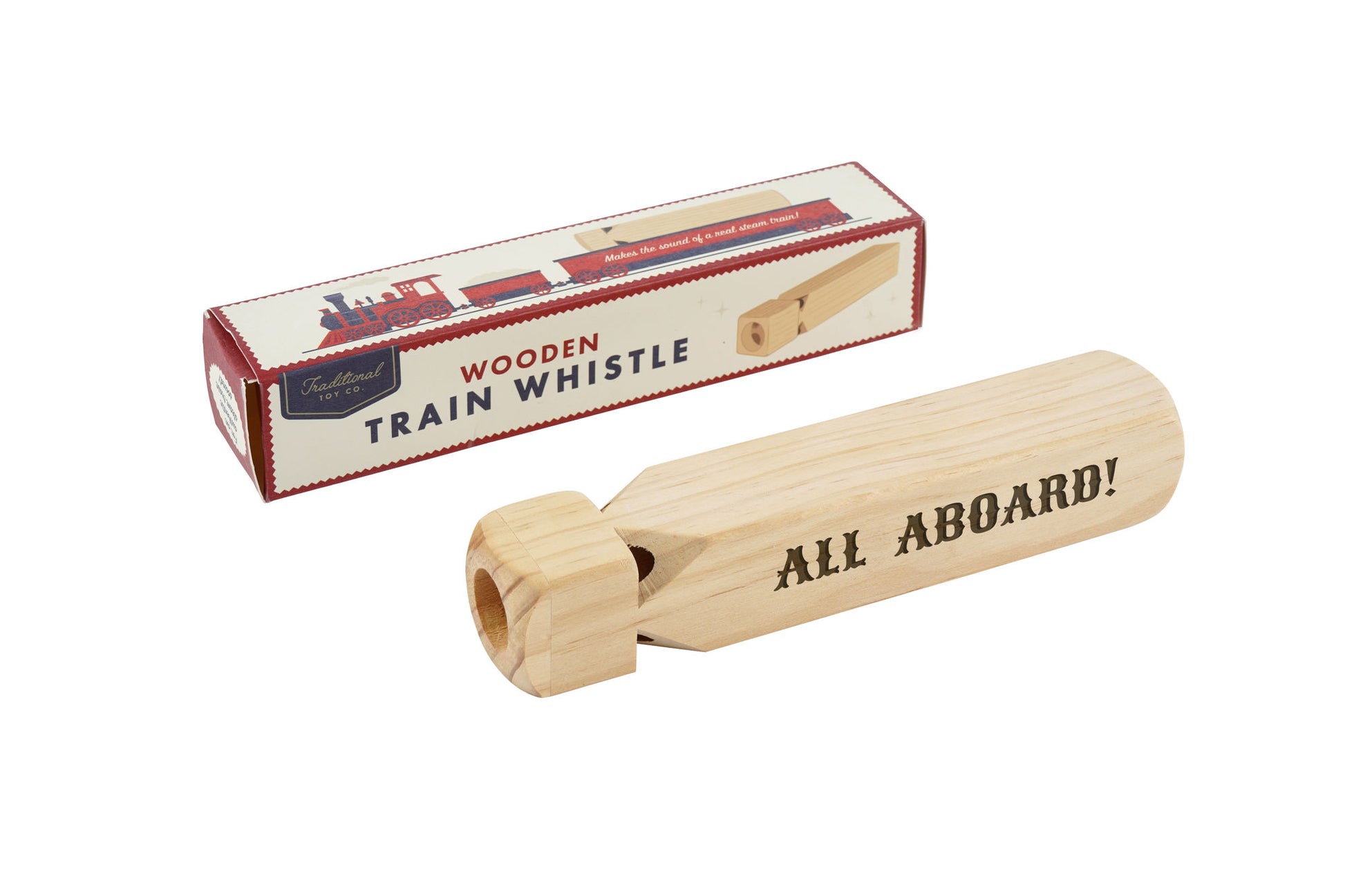All Aboard Engraved Train Wooden Whistle | Choo Choo | Gift Boxed | Holiday Stocking Filler | Charming Toy Gift for Kids & Seasonal Fun
