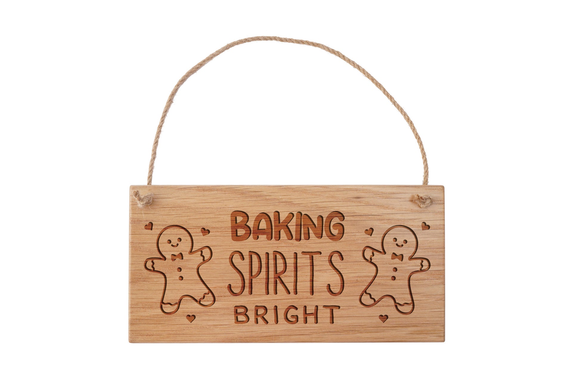 Christmas Oak Hanging Sign 'Baking Spirits Bright' | Festive Sign | Home Decor | Homeware