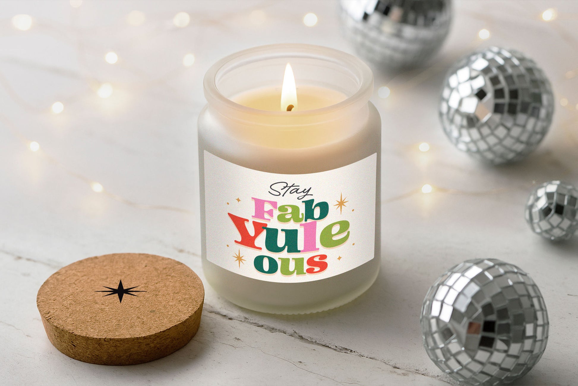 🕯️ Candle Size: 9.2cm (H) x 7cm (W) - frosted glass jar featuring a bold “Stay Fab-Yule-ous” design with winter snowflakes for festive attitude and charm.