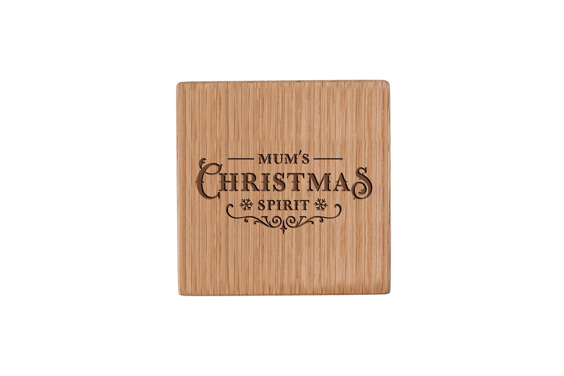 π Mum's Christmas Cheer Square Oak Coaster: Celebrate the festive season with this elegant square oak coaster, featuring the cheerful βMumβs Christmas Cheerβ. A thoughtful way to bring seasonal joy to any home.