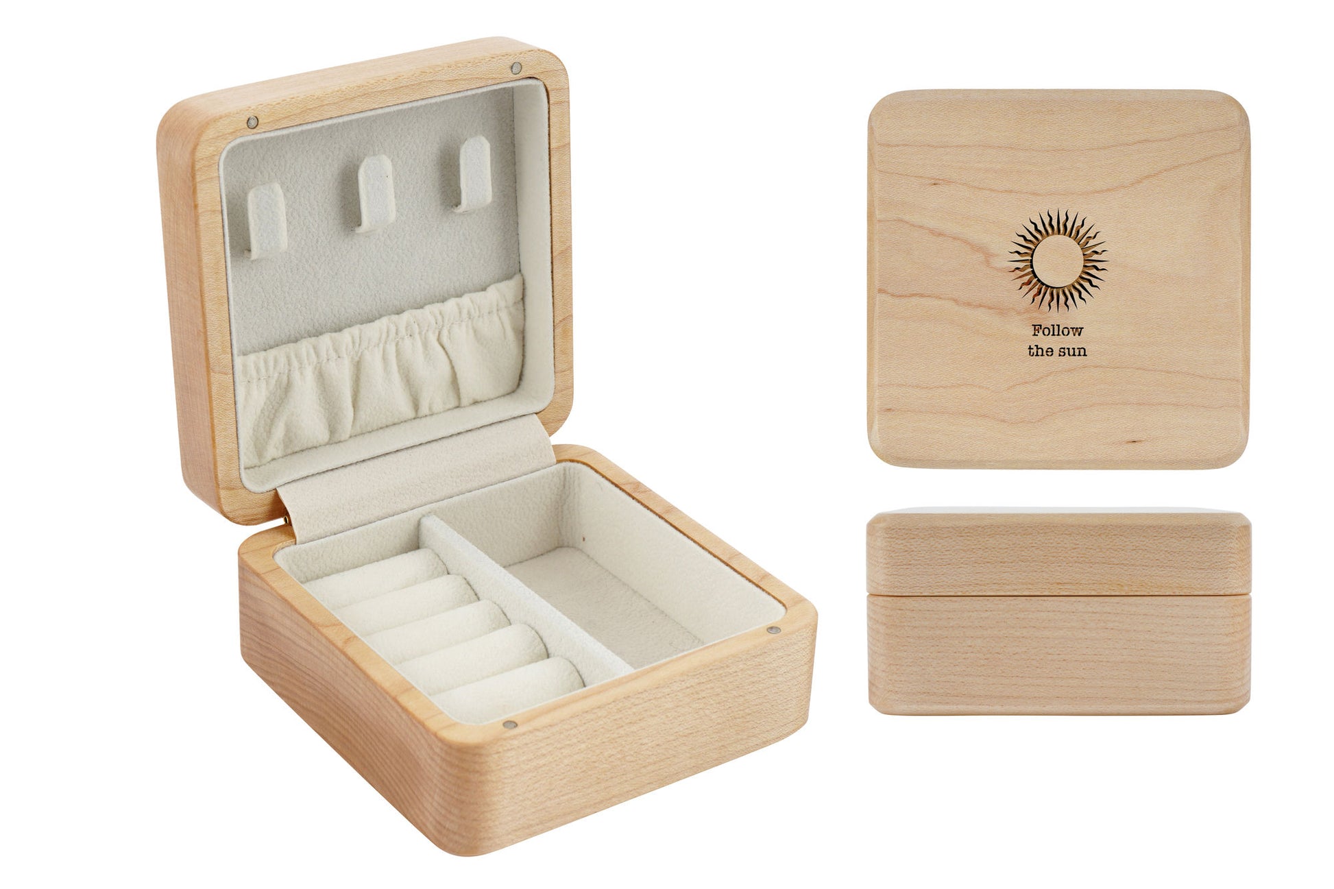 π This beautiful wooden jewellery box is engraved with the inspiring slogan βFollow The Sunβ and features a delicate sun illustration on the lid.