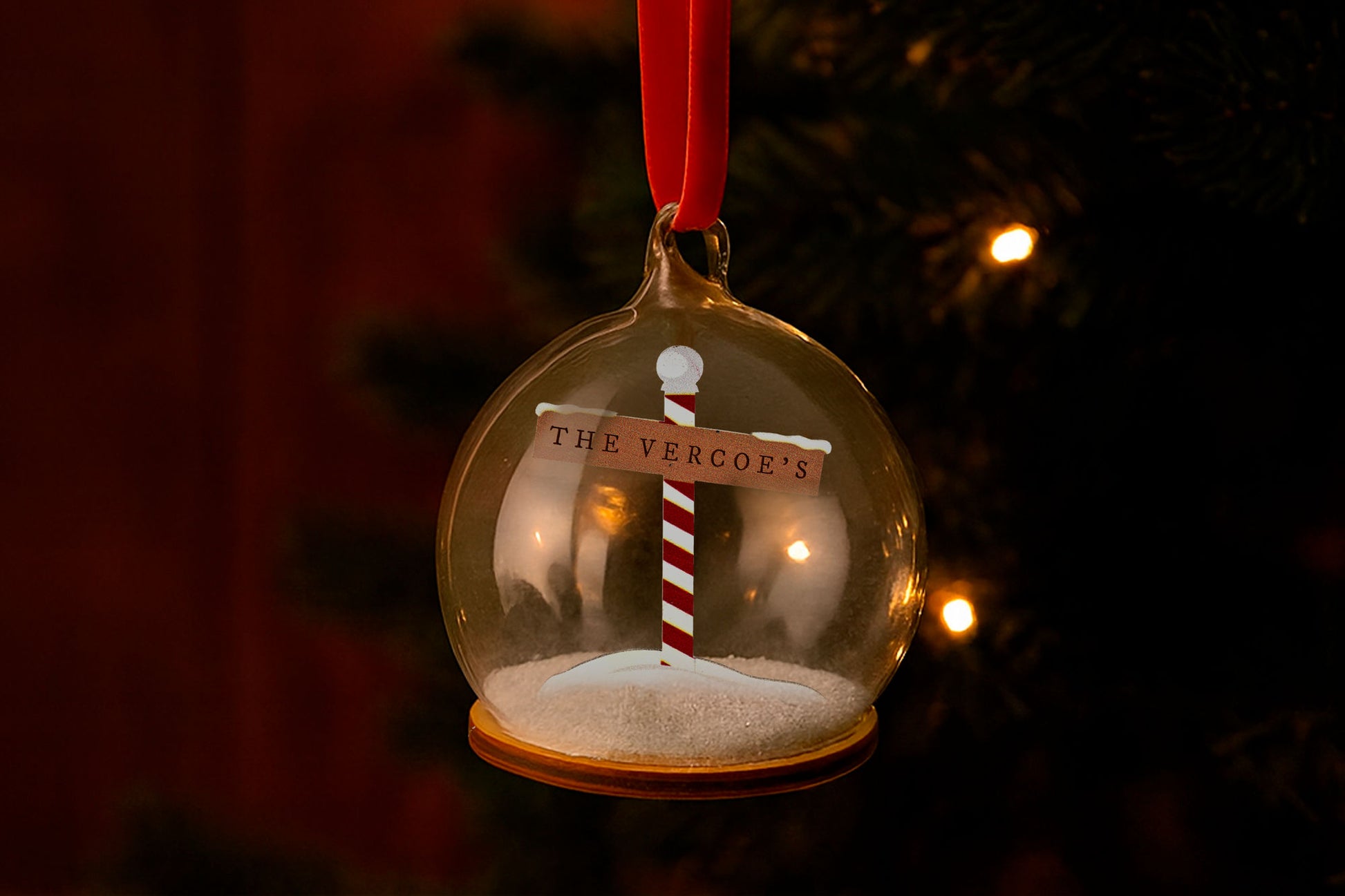 Personalised North Pole Christmas Bauble | 'Family Surname' | Christmas Keepsake Family Traditions | Glass Tree Decoration Ornament | Boxed