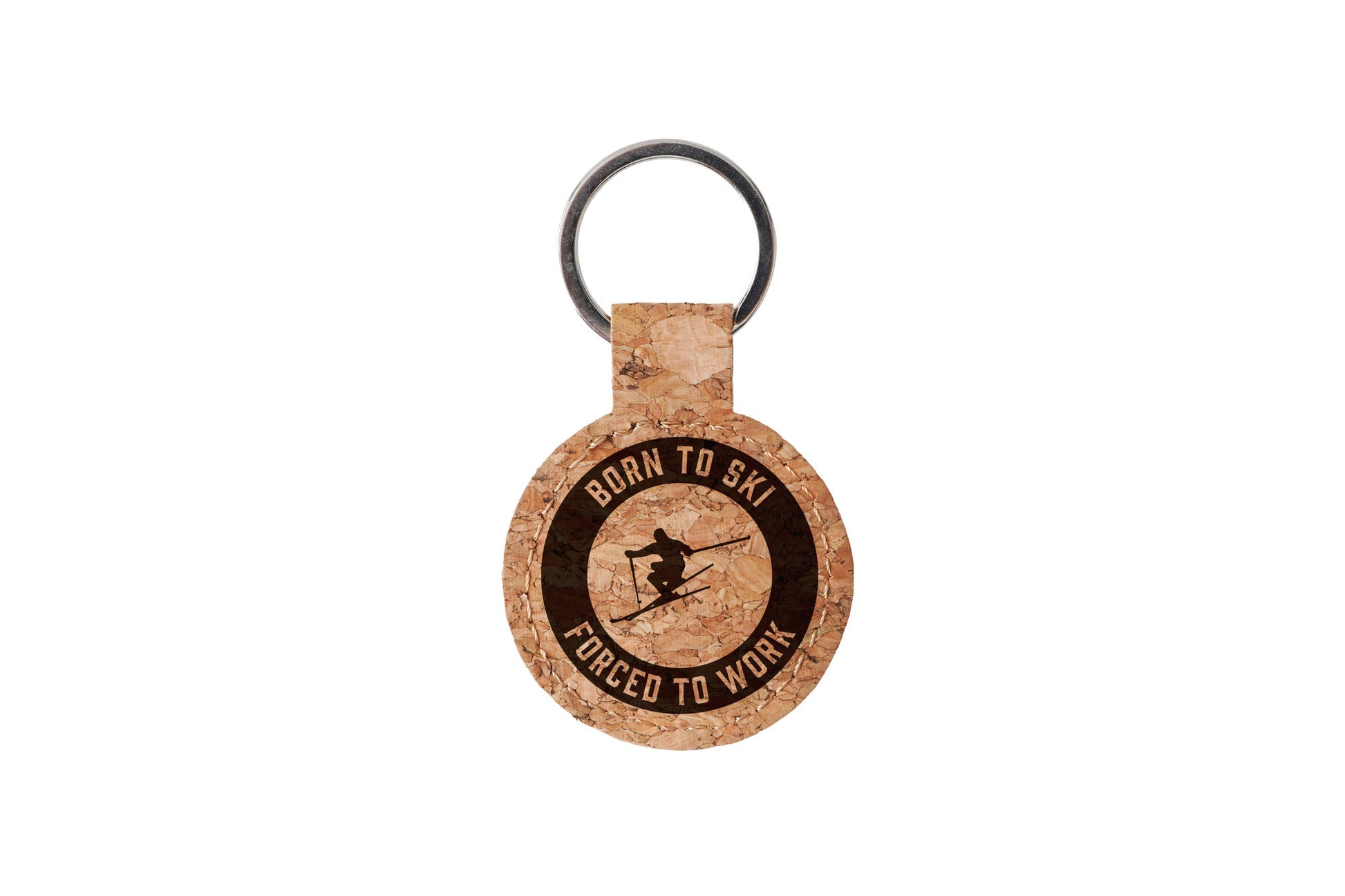 🎁 Hit the slopes in spirit—wherever you go—with our "Born To Ski, Forced To Work" round cork keyring.