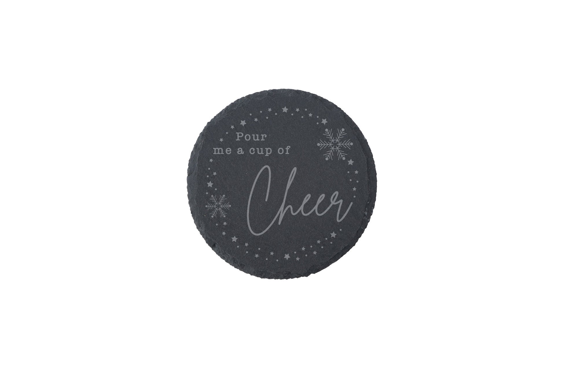 Round Slate Coaster - 'Pour Me A Cup Of Cheer' | Festive Coaster | Christmas | Home Decor